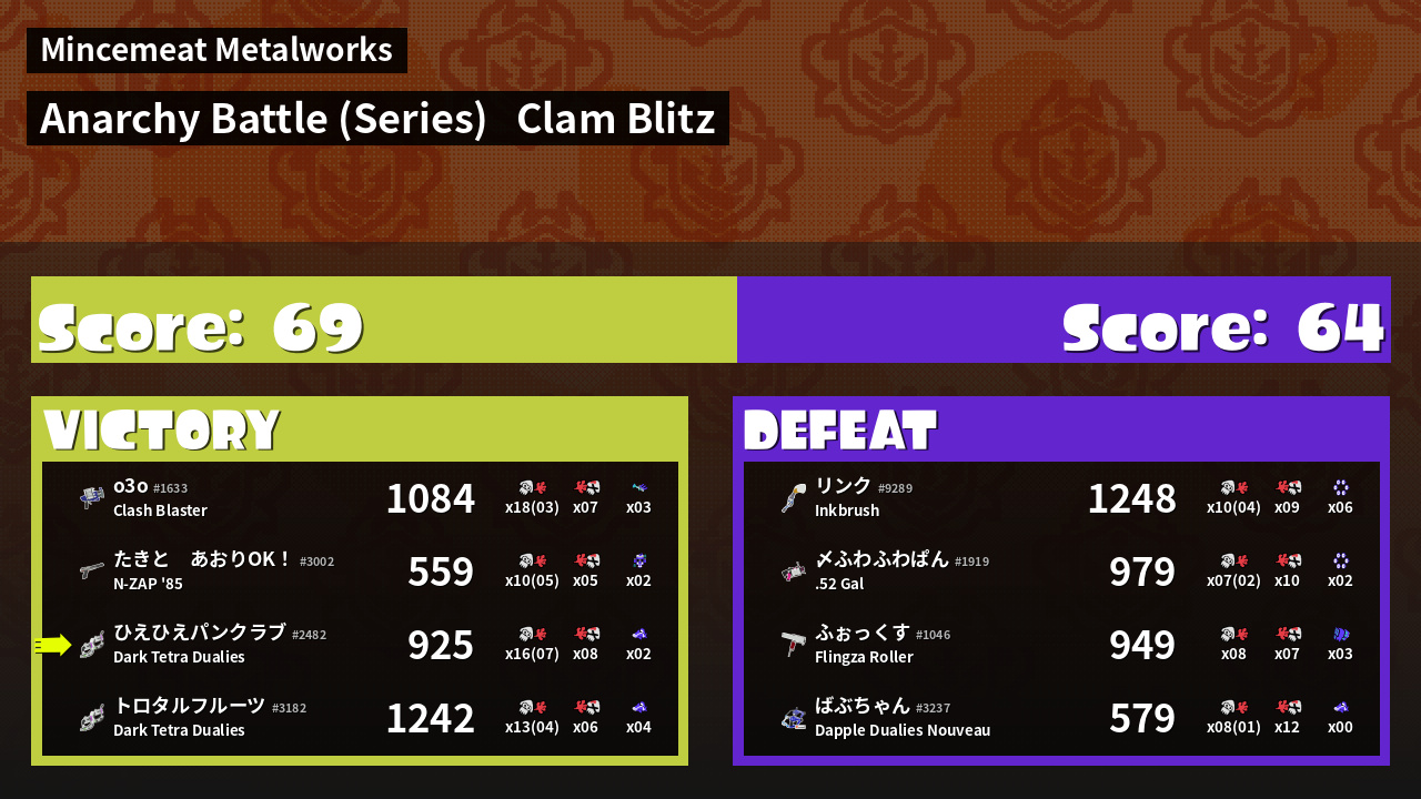 | Mode | Clam Blitz - Anarchy Battle (Series) | ||