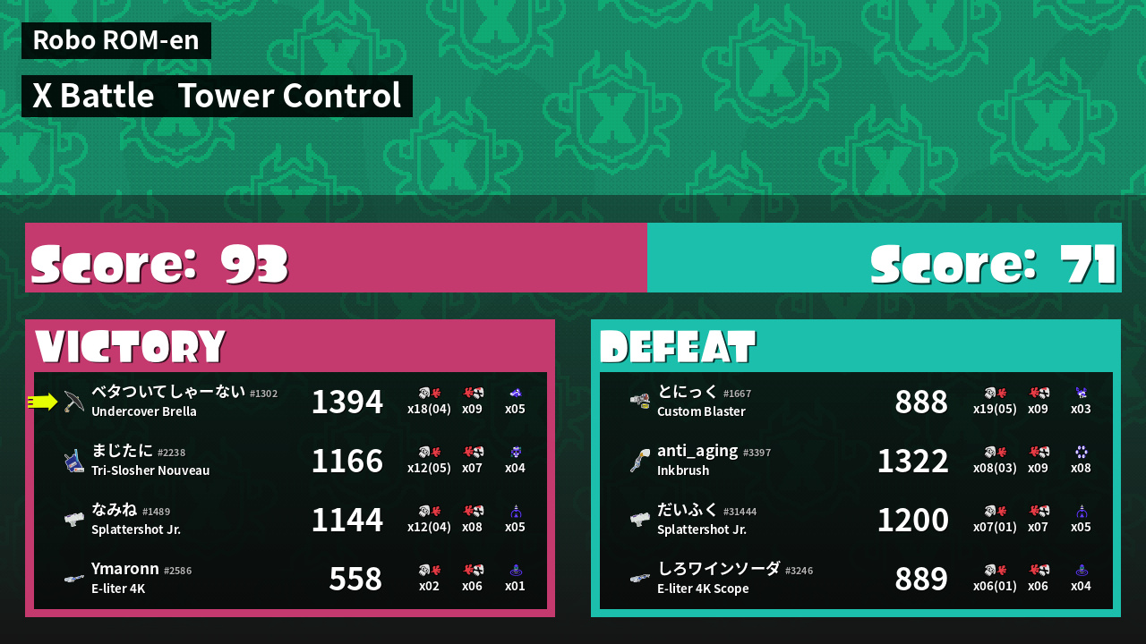 | Mode | Tower Control - X Battle | ||