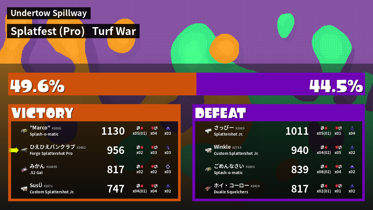 | Mode | Turf War - Splatfest (Pro) | ||