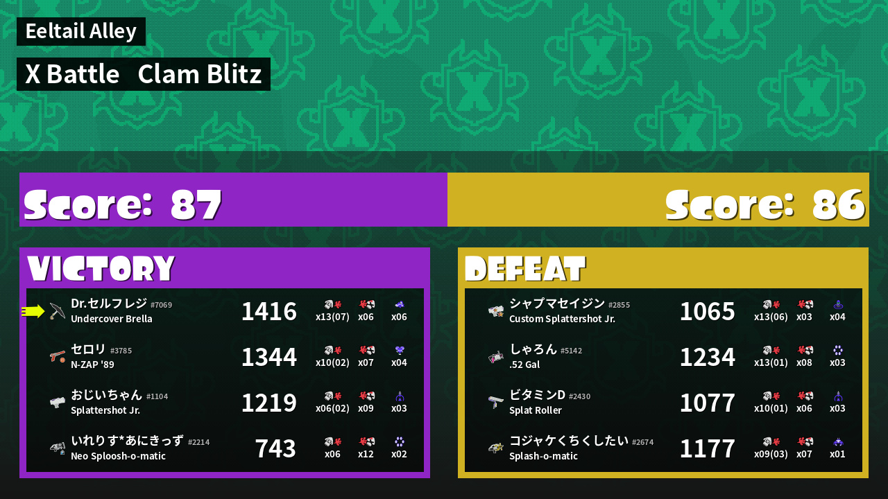 | Mode | Clam Blitz - X Battle | ||