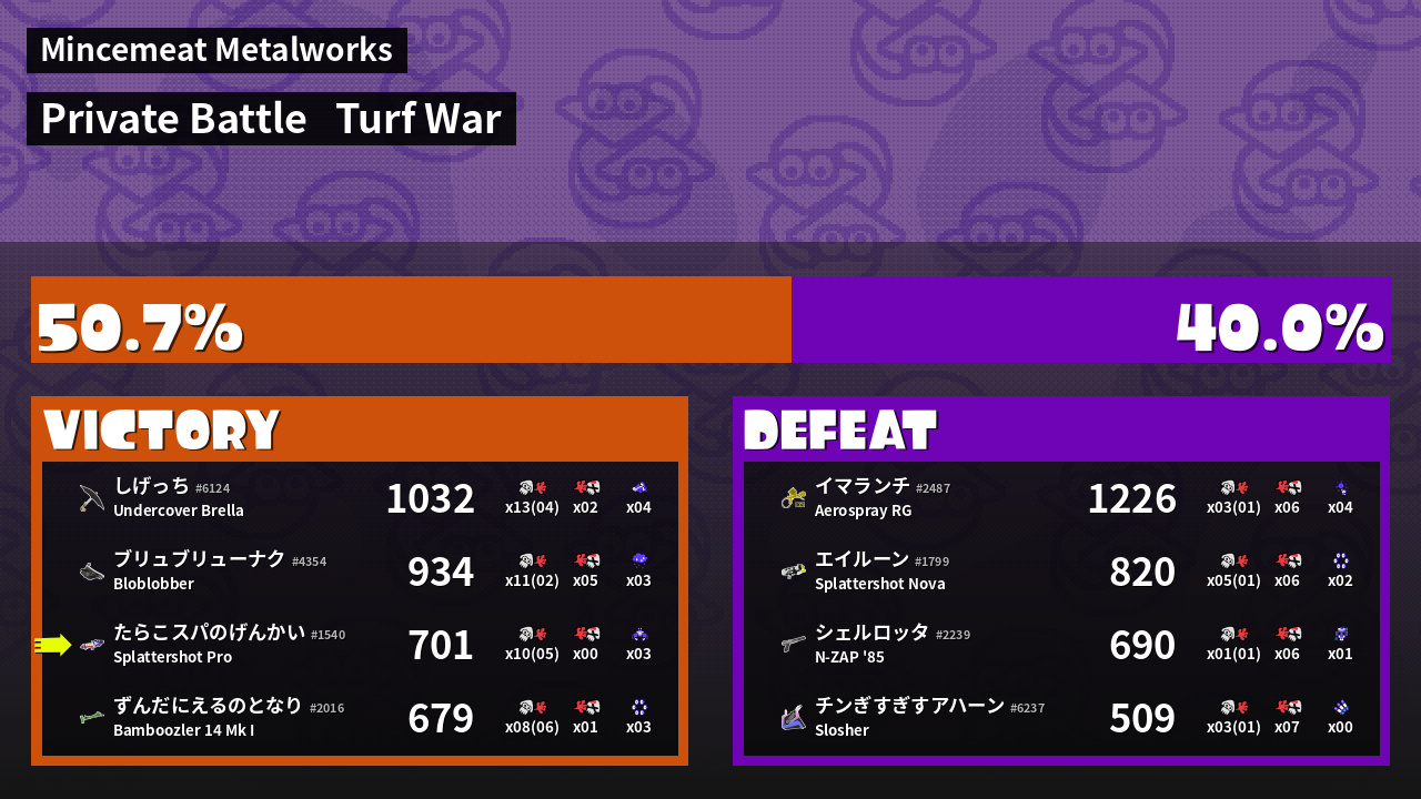 | Mode | Turf War - Private Battle | ||
