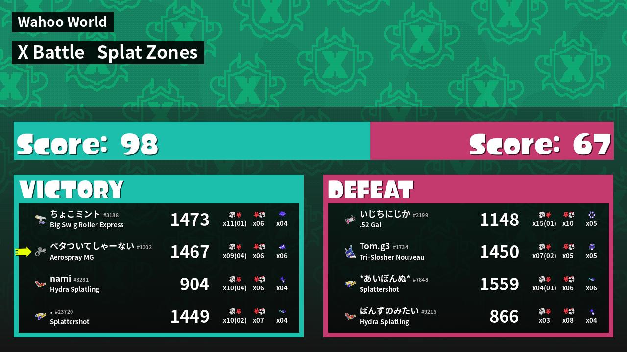 | Medals | #1 Splat Zone Inker #1 Splat Zone Guard #1 Popular Target | ||