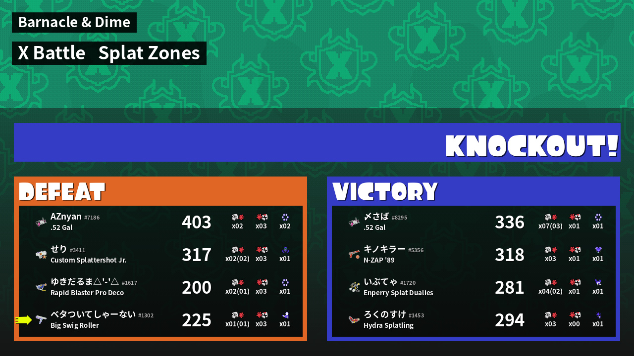 | Mode | Splat Zones - X Battle | ||