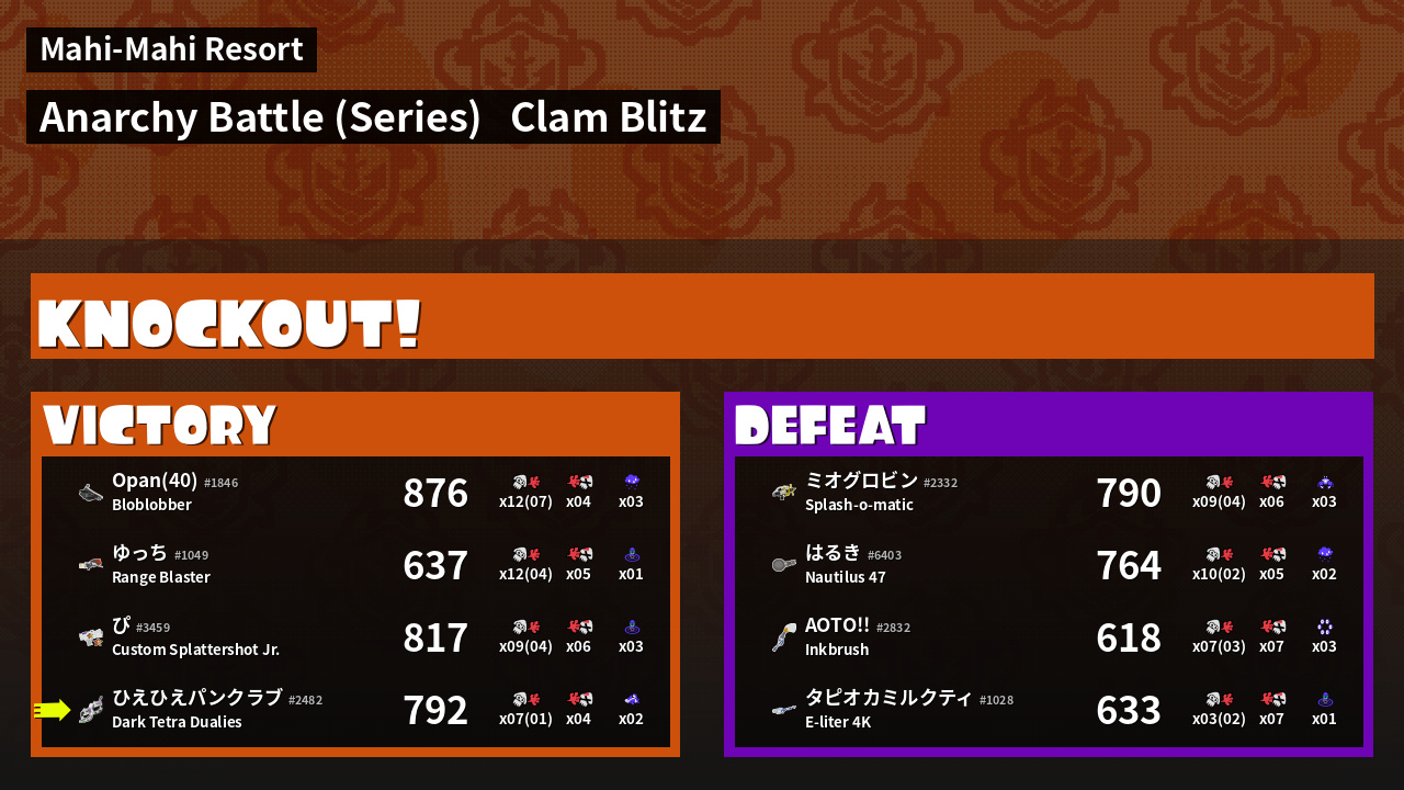 | Mode | Clam Blitz - Anarchy Battle (Series) | ||
