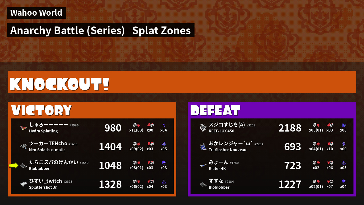 | Mode | Splat Zones - Anarchy Battle (Series) | ||