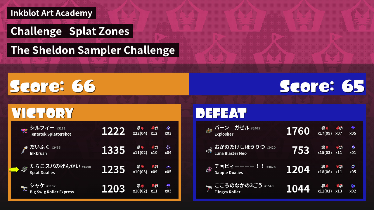 | Medals | #1 Popular Target #1 Splat Zone Hero #1 Damage Taker | ||