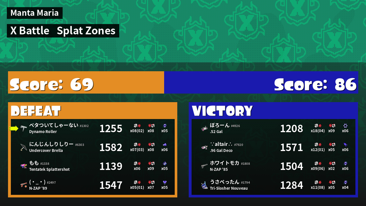 | Mode | Splat Zones - X Battle | ||
