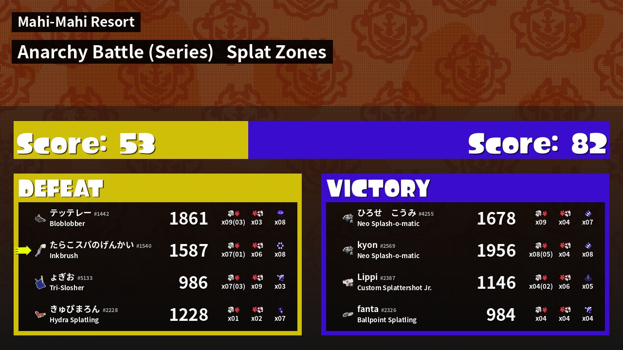 | Mode | Splat Zones - Anarchy Battle (Series) | ||