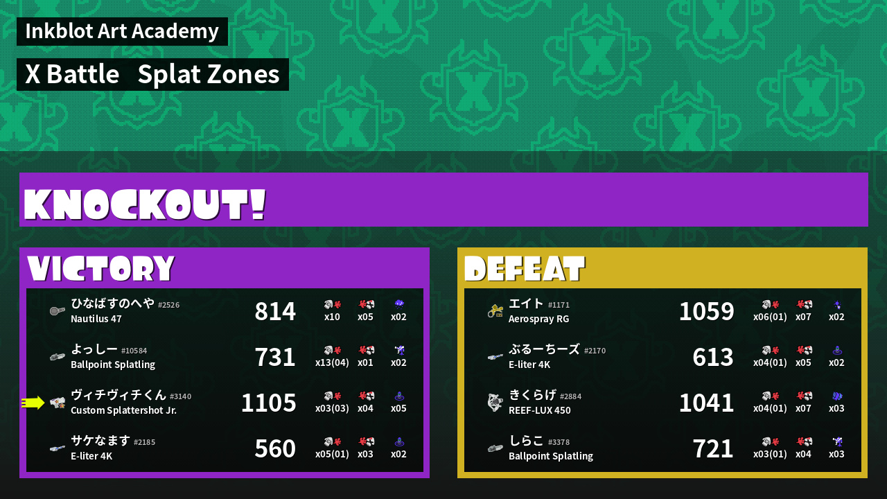 | Medals | #1 Splat Zone Inker #1 Turf Inker #1 Ground Traveler | ||