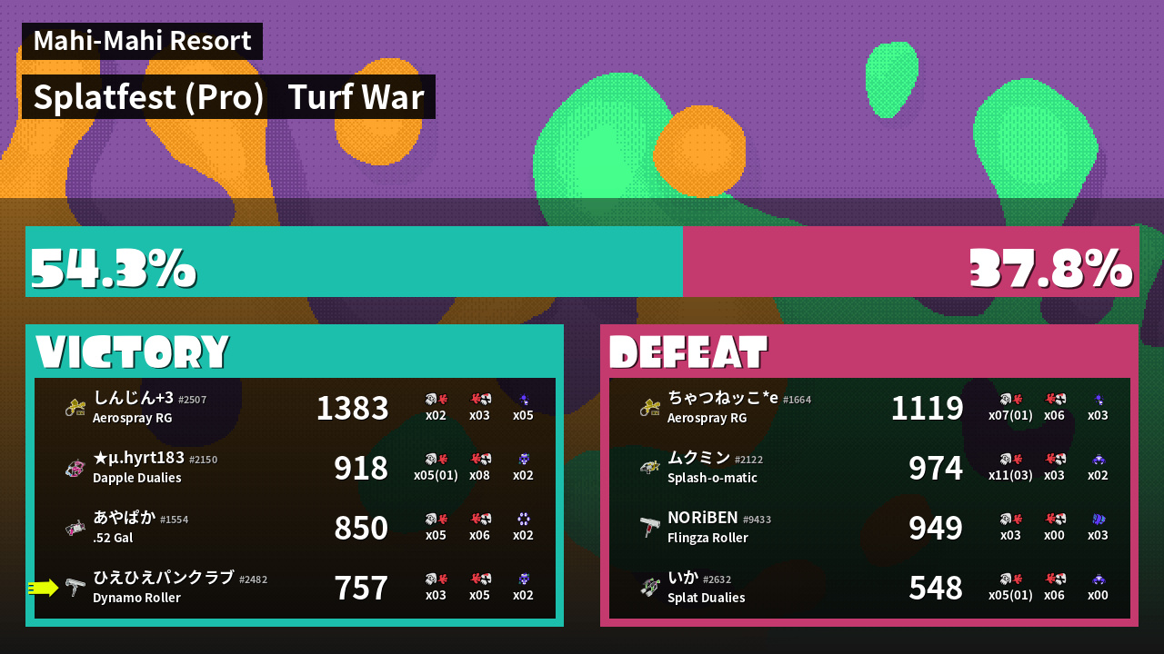 | Mode | Turf War - Splatfest (Pro) | ||