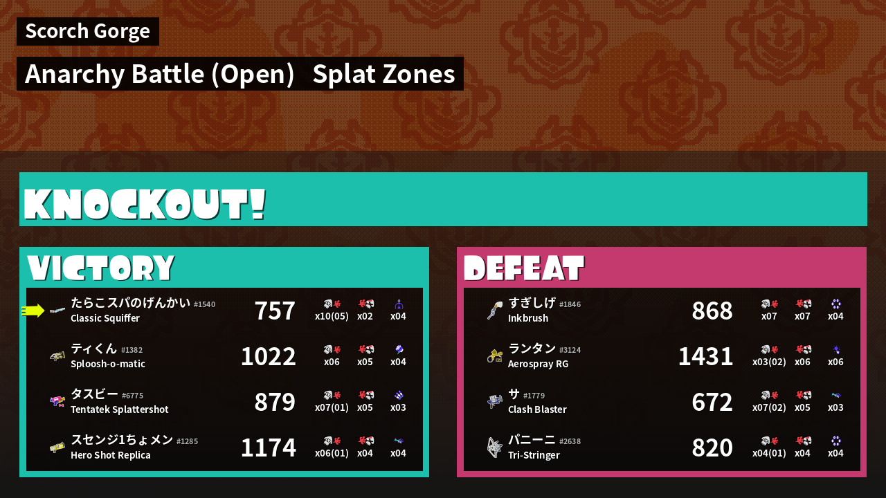 | Mode | Splat Zones - Anarchy Battle (Open) | ||