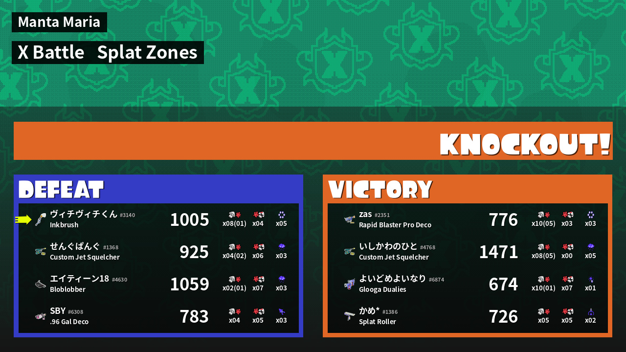 | Mode | Splat Zones - X Battle | ||
