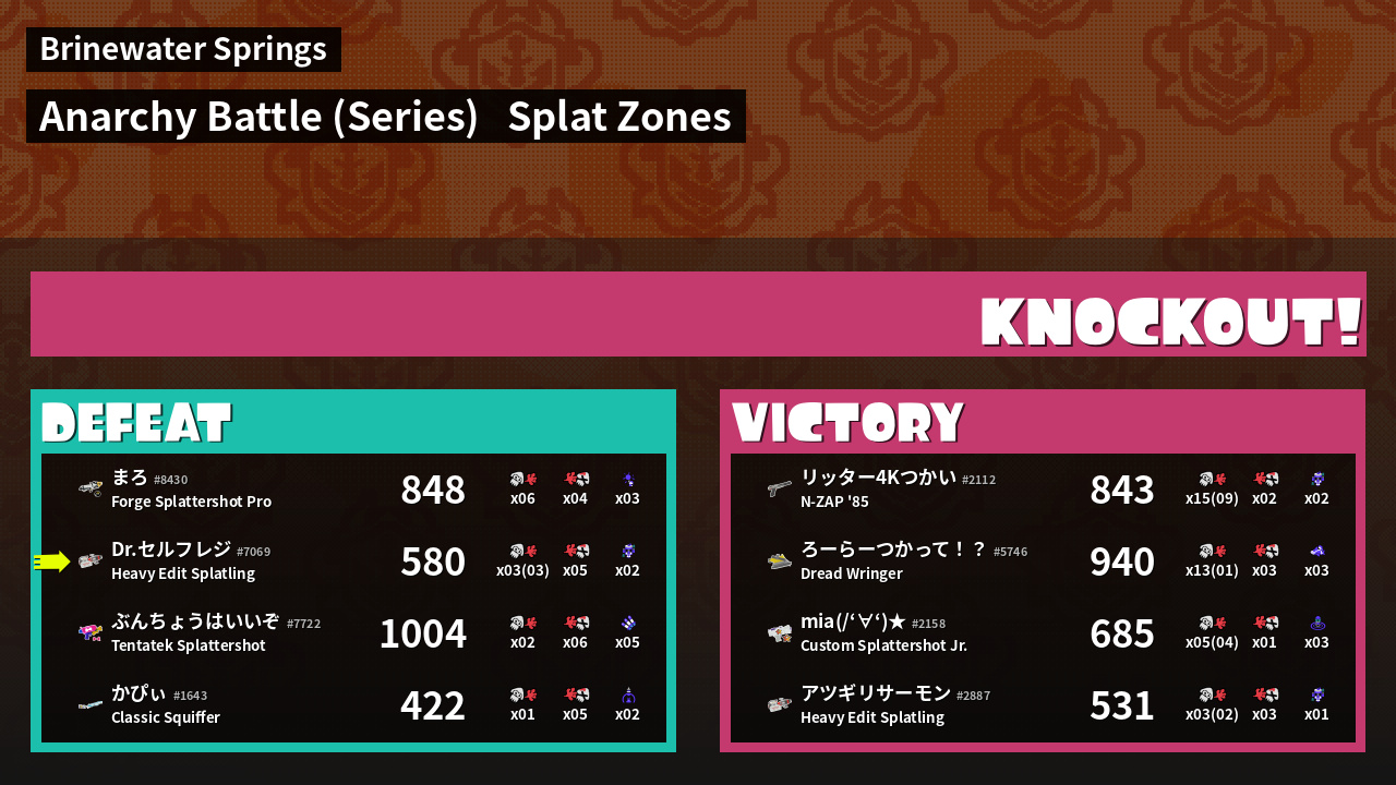 | Mode | Splat Zones - Anarchy Battle (Series) | ||