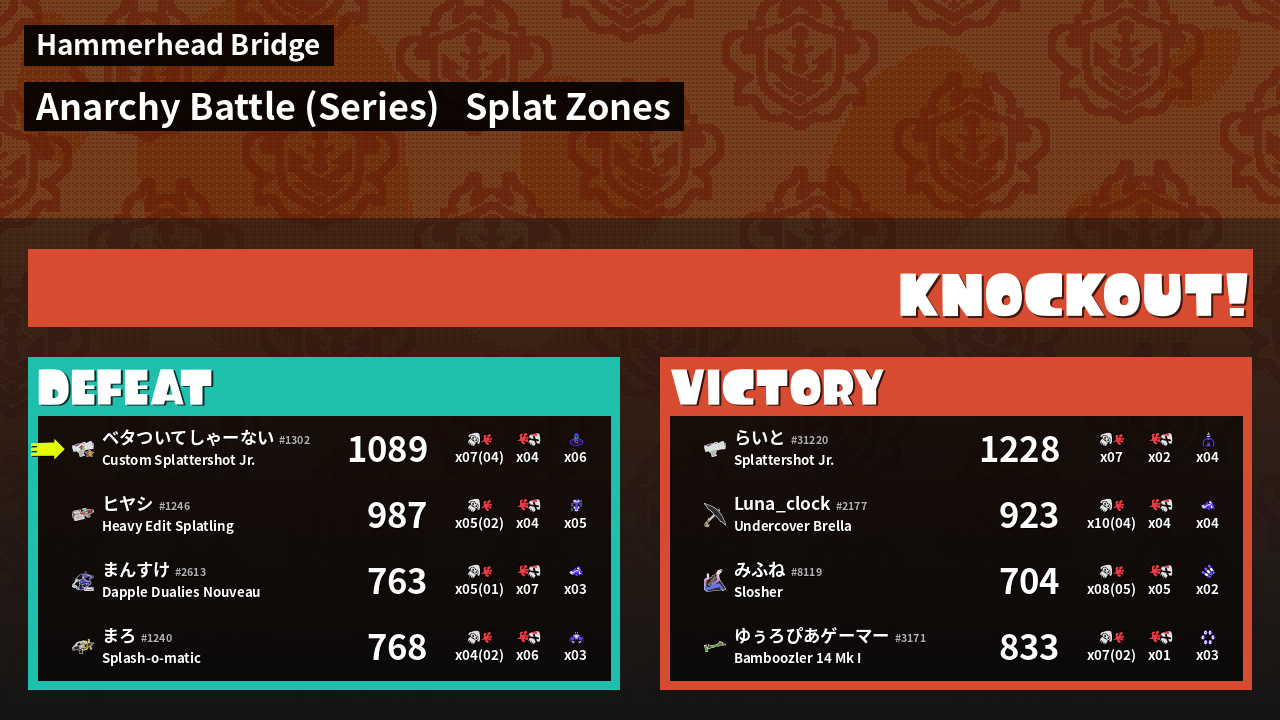 | Mode | Splat Zones - Anarchy Battle (Series) | ||