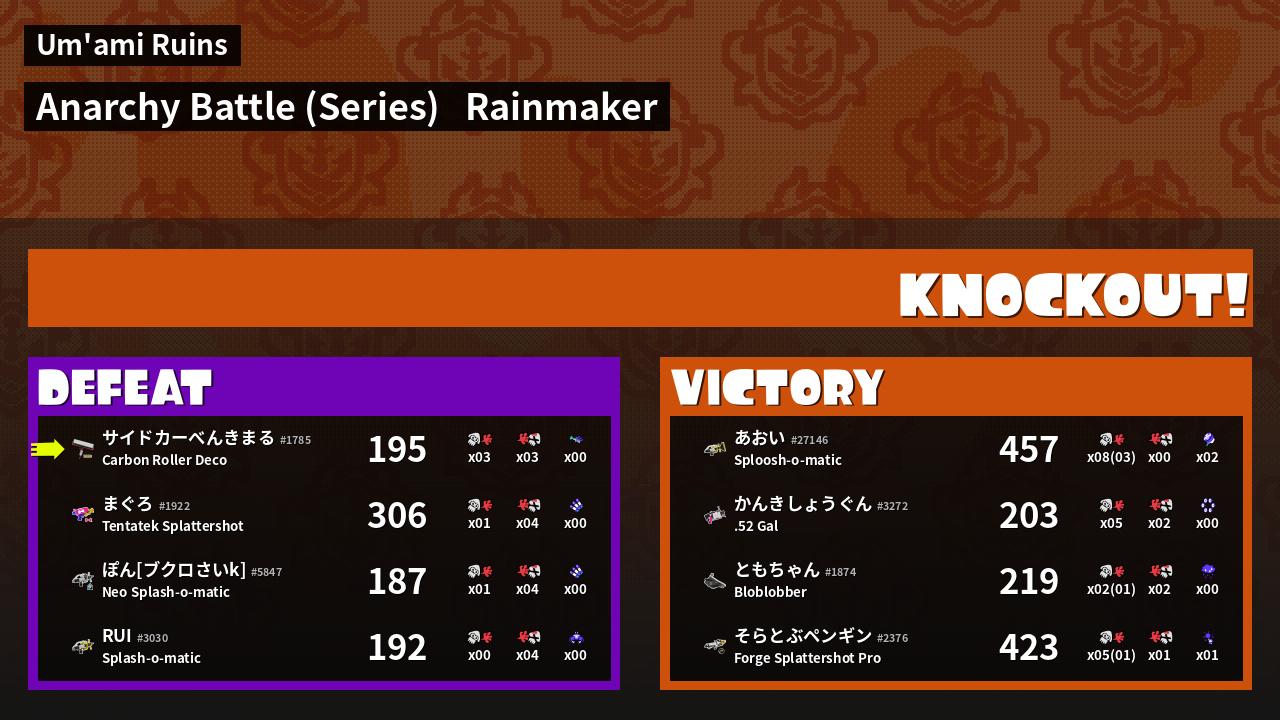 | Medals | #1 Overall Splatter #1 Popular Target #1 Super Jump Spot | ||
