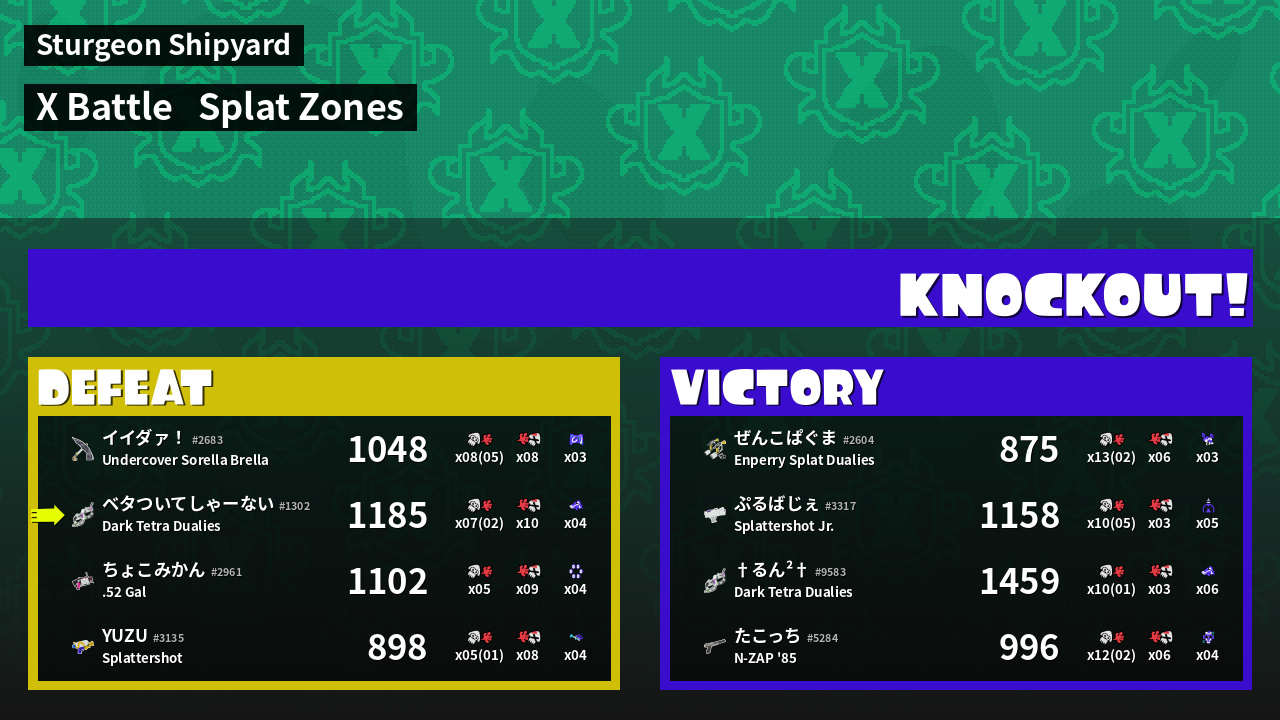 | Mode | Splat Zones - X Battle | ||