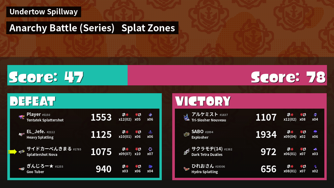 | Mode | Splat Zones - Anarchy Battle (Series) | ||