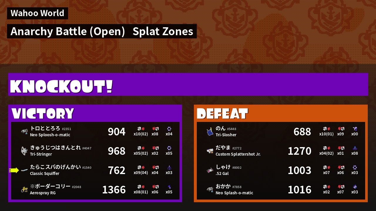 | Mode | Splat Zones - Anarchy Battle (Open) | ||
