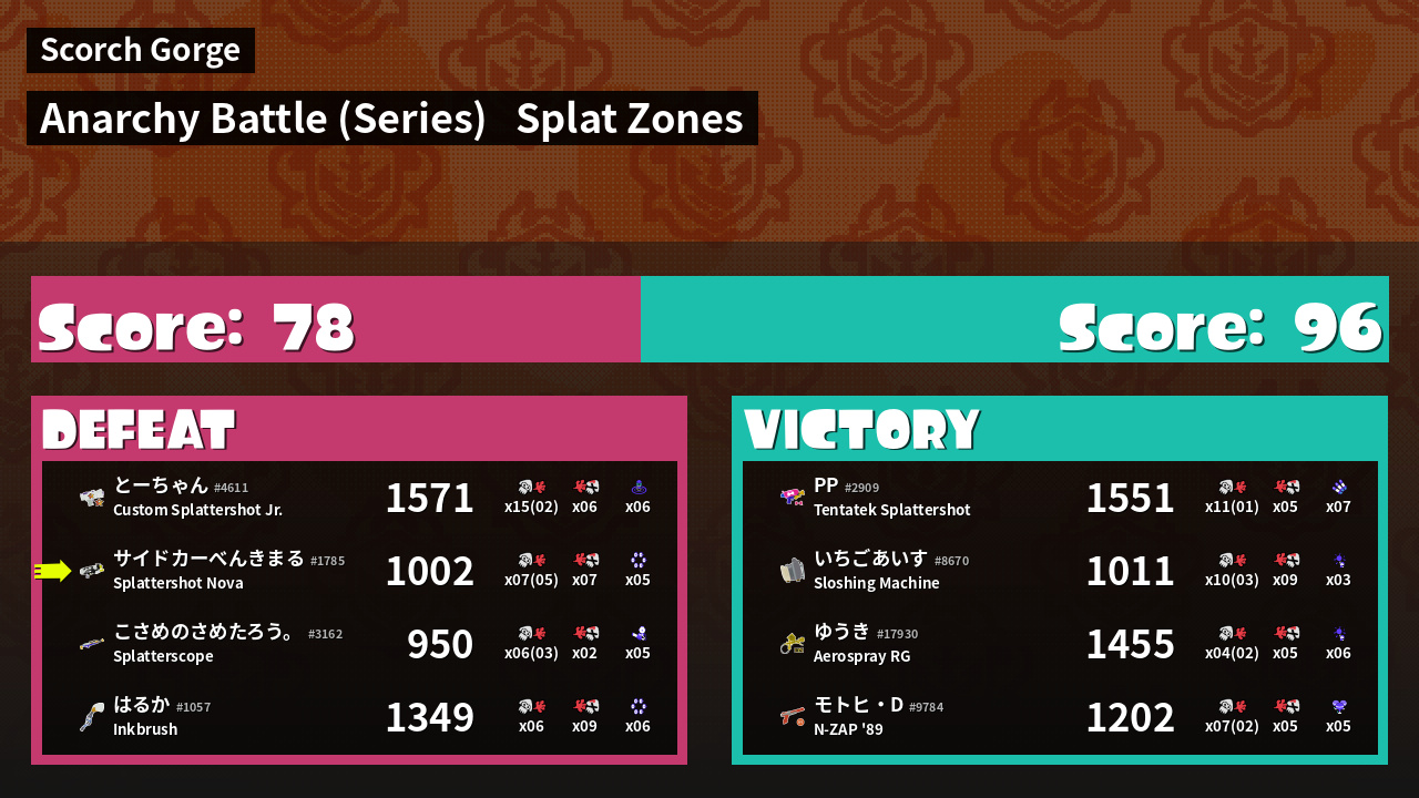 | Mode | Splat Zones - Anarchy Battle (Series) | ||
