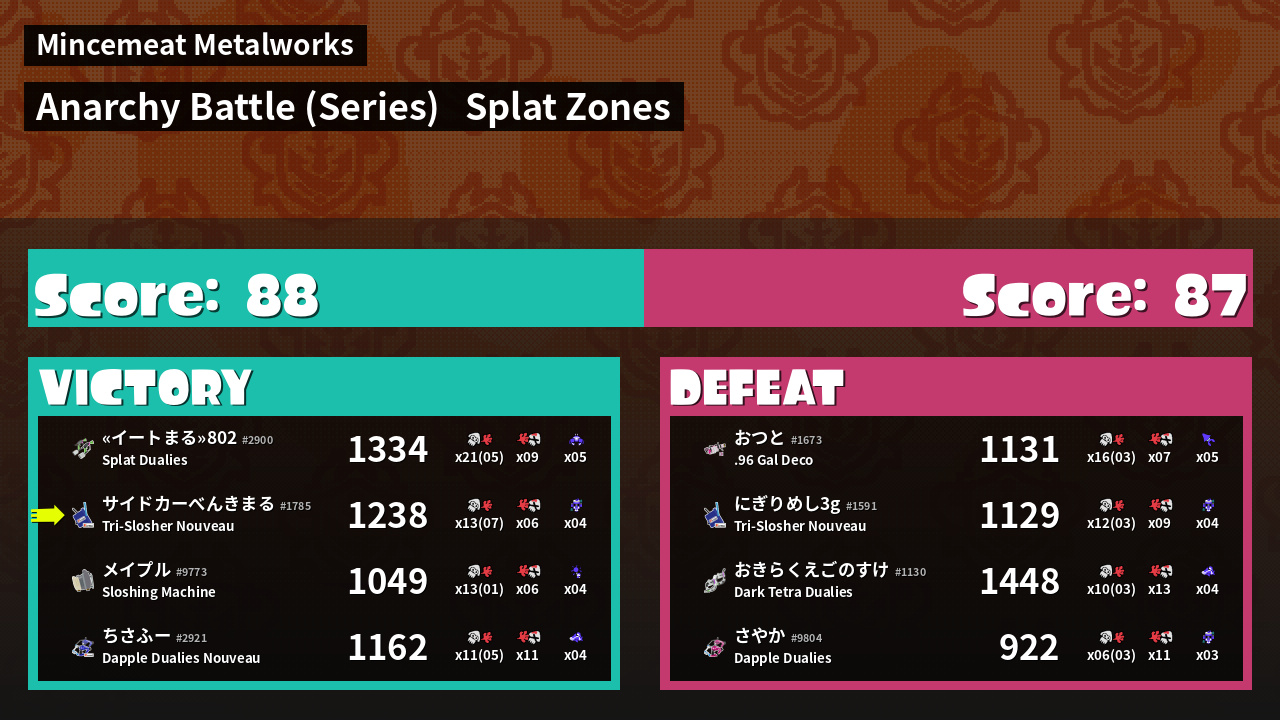 | Mode | Splat Zones - Anarchy Battle (Series) | ||