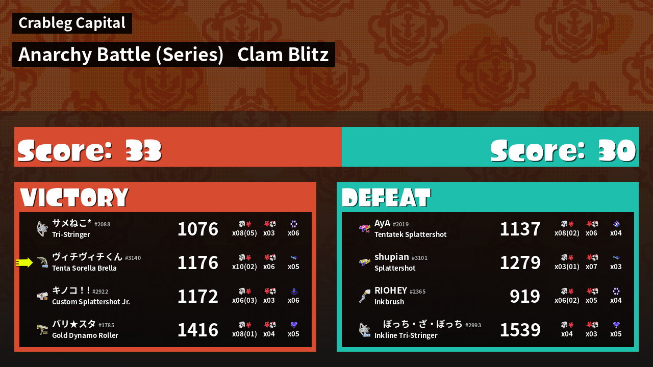 | Mode | Clam Blitz - Anarchy Battle (Series) | ||