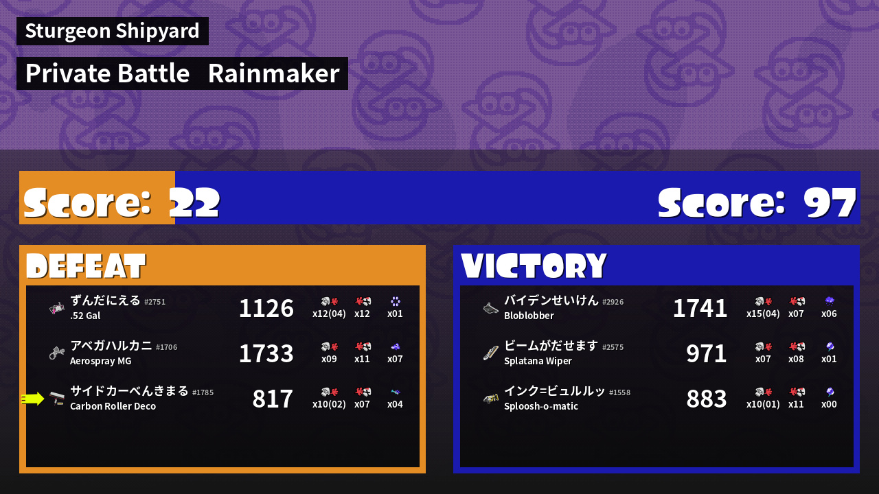| Weapon | Carbon Roller Deco ( Burst Bomb / Trizooka) | ||
