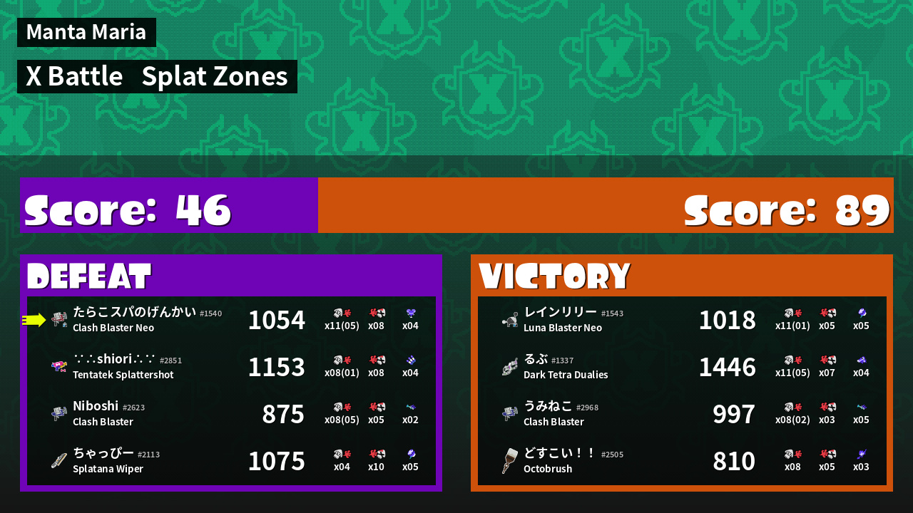 | Mode | Splat Zones - X Battle | ||