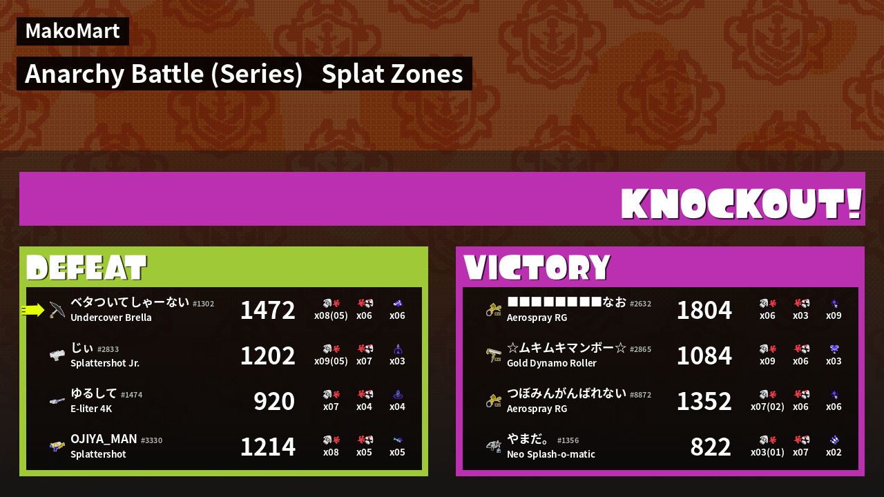 | Mode | Splat Zones - Anarchy Battle (Series) | ||