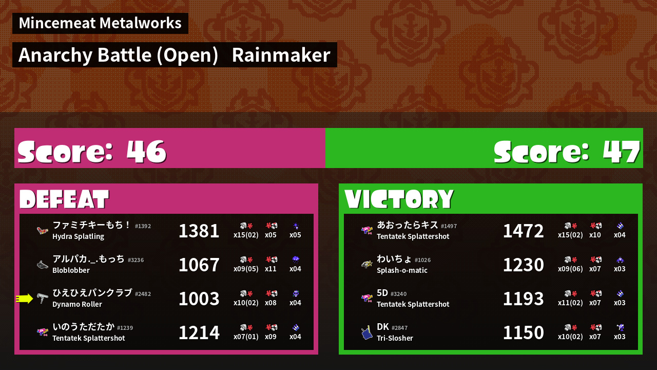 | Mode | Rainmaker - Anarchy Battle (Open) | ||