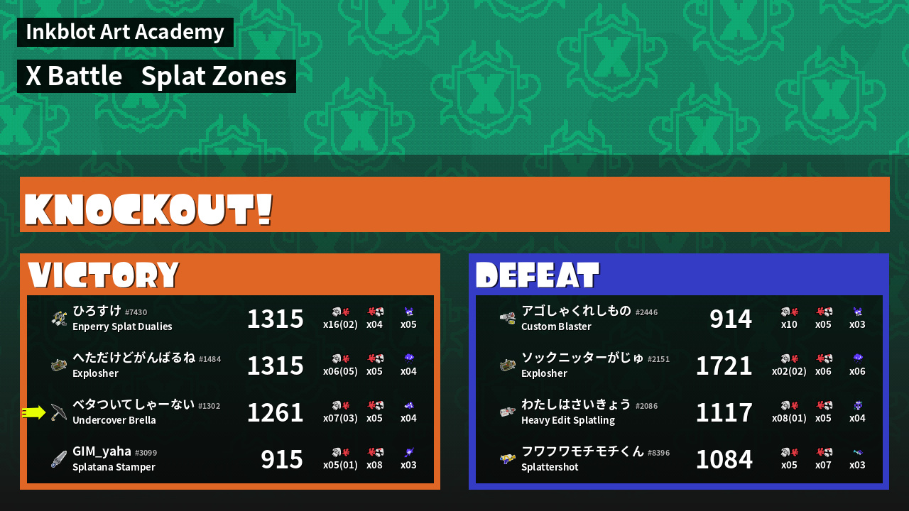 | Medals | #1 Splat Zone Hero #1 Ink Consumer #1 Reefslider User | ||