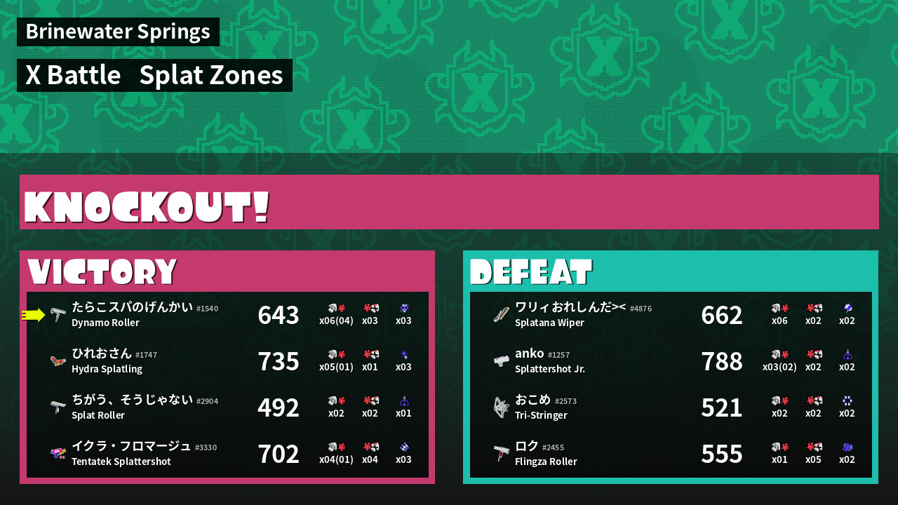 | Weapon | Dynamo Roller ( Sprinkler / Tacticooler) | ||