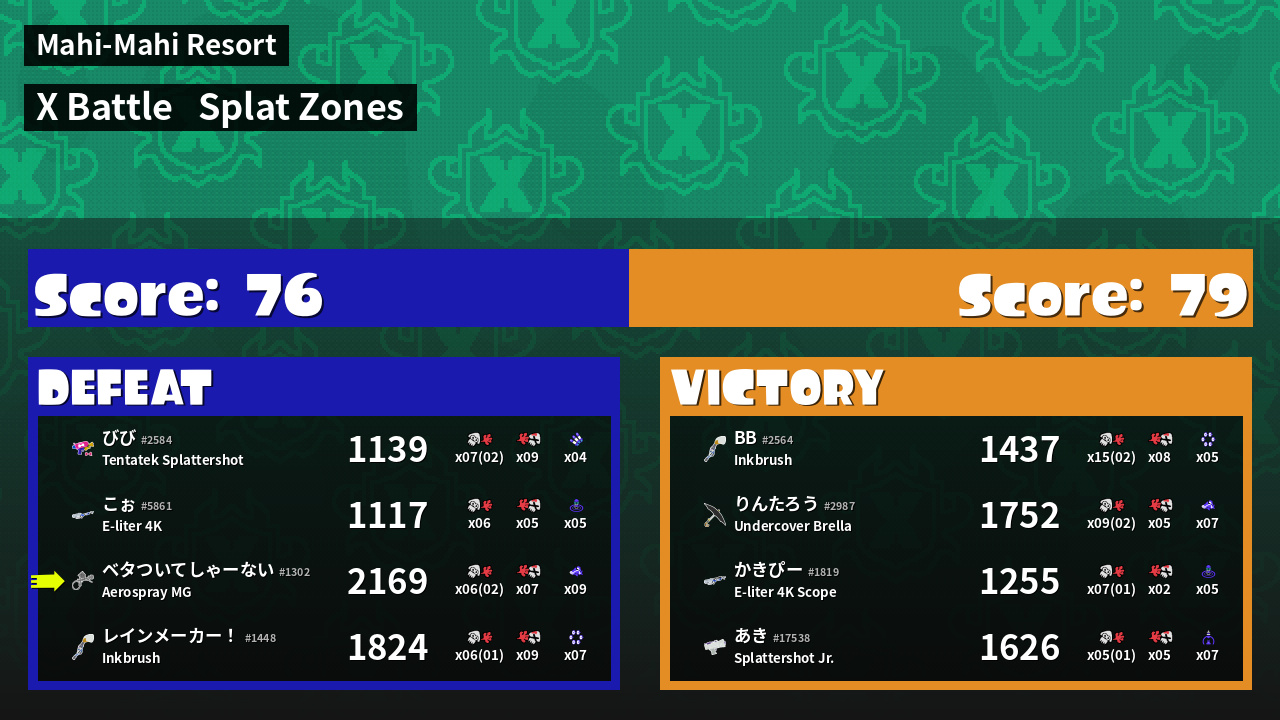 | Mode | Splat Zones - X Battle | ||