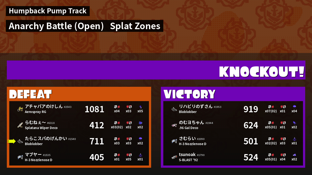 | Mode | Splat Zones - Anarchy Battle (Open) | ||