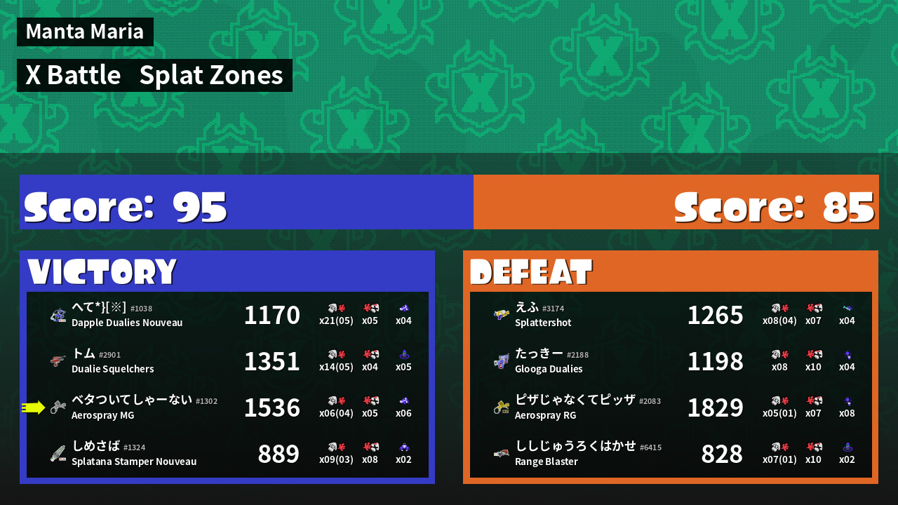 | Mode | Splat Zones - X Battle | ||