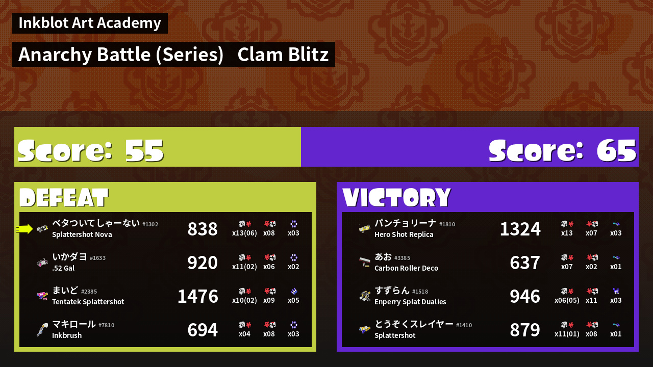| Mode | Clam Blitz - Anarchy Battle (Series) | ||