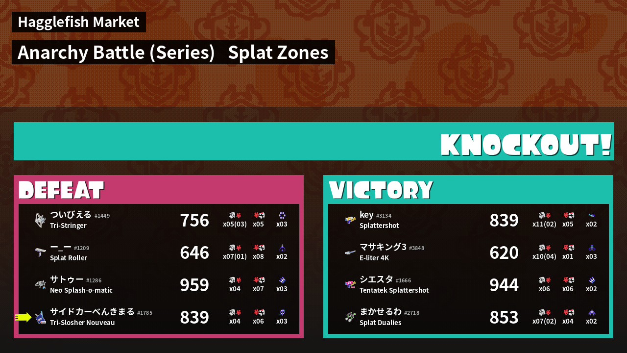 | Medals | #1 Splat Zone Hero #1 Tacticooler User #2 Splat Zone Inker | ||