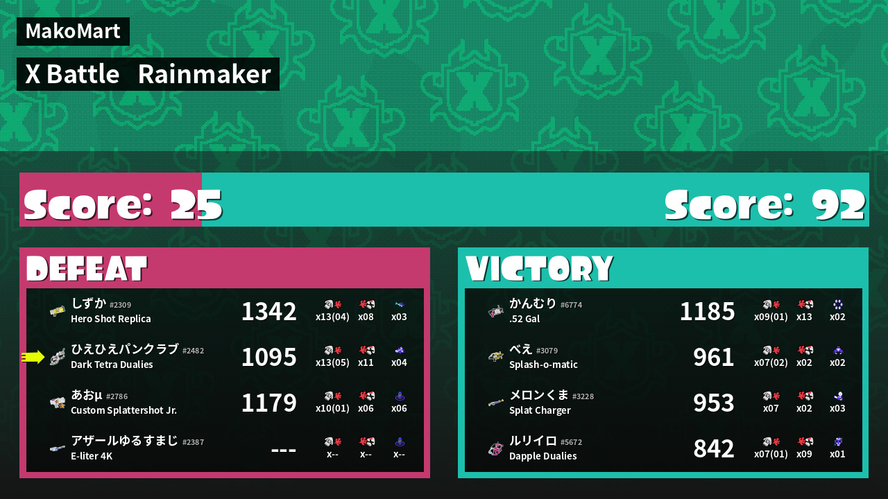 | Mode | Rainmaker - X Battle | ||