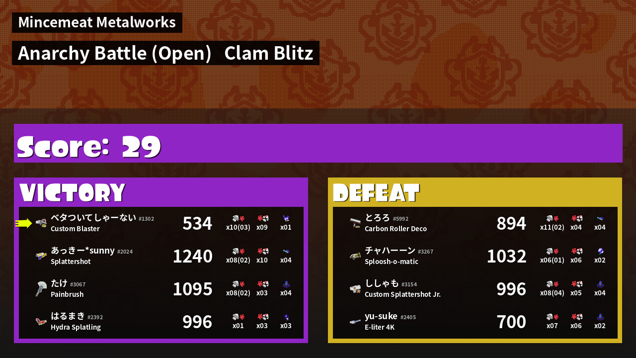 | Mode | Clam Blitz - Anarchy Battle (Open) | ||