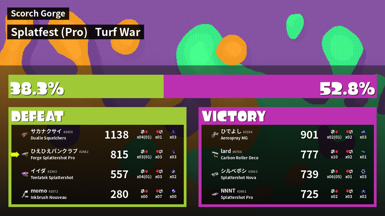| Mode | Turf War - Splatfest (Pro) | ||