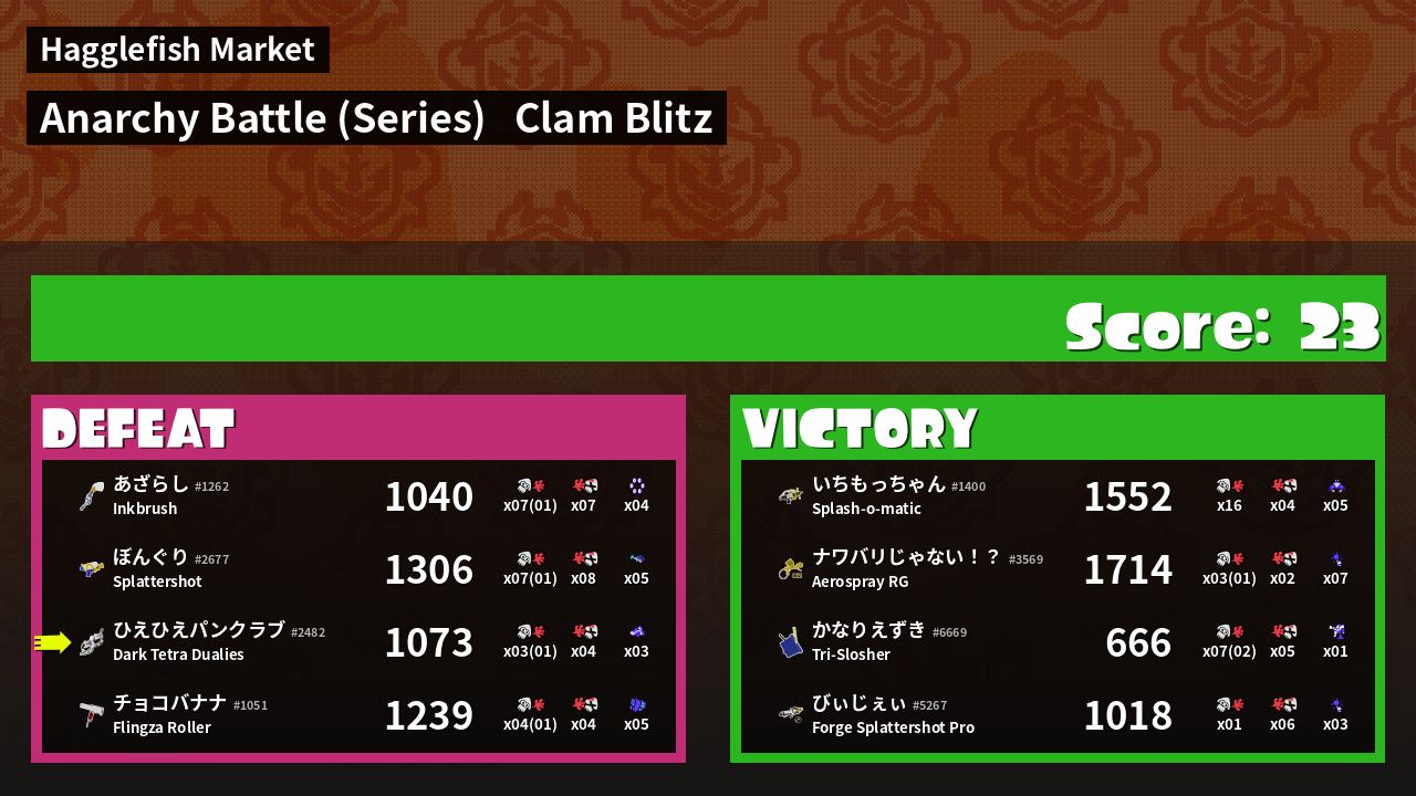 | Mode | Clam Blitz - Anarchy Battle (Series) | ||