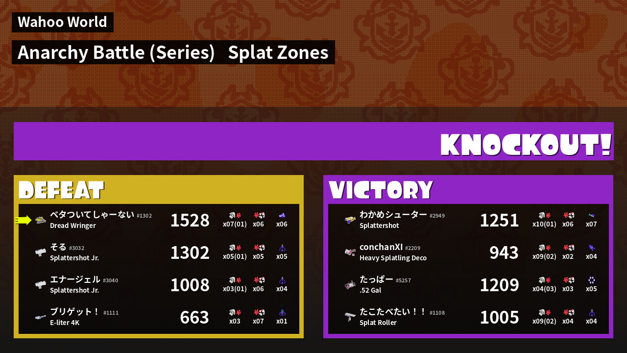 | Mode | Splat Zones - Anarchy Battle (Series) | ||