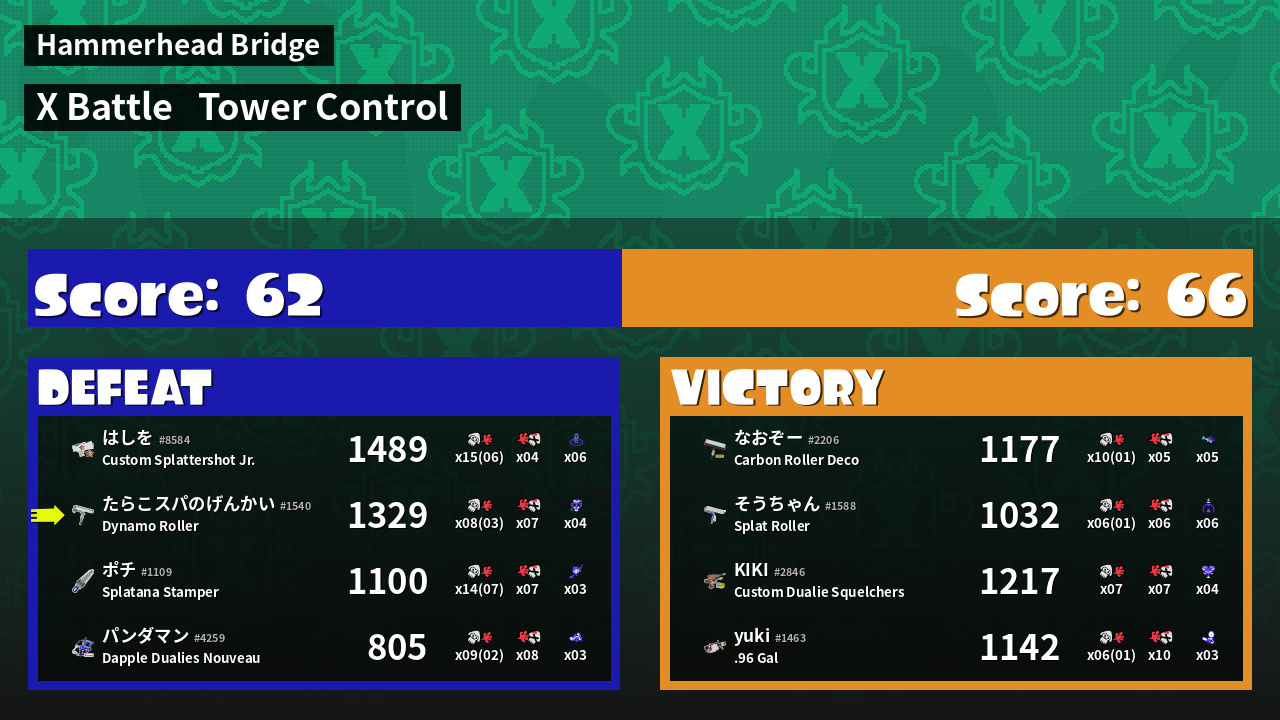| Mode | Tower Control - X Battle | ||