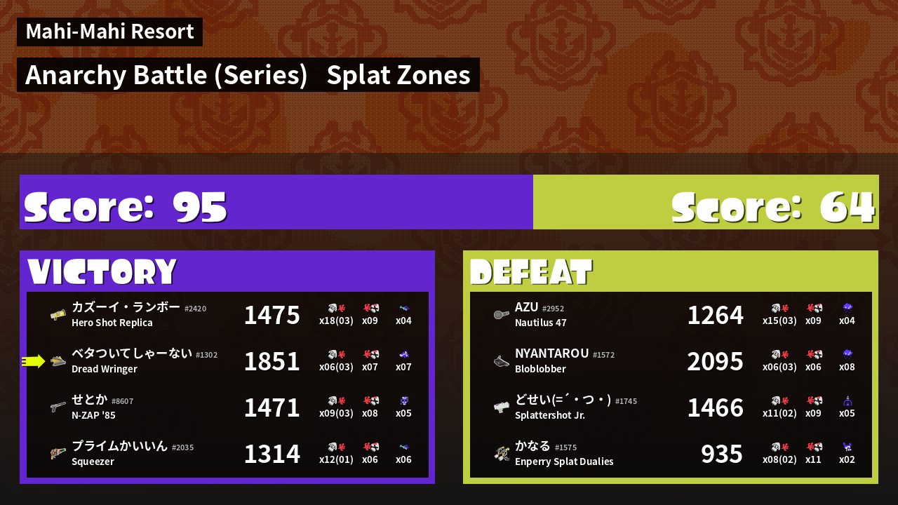 | Mode | Splat Zones - Anarchy Battle (Series) | ||