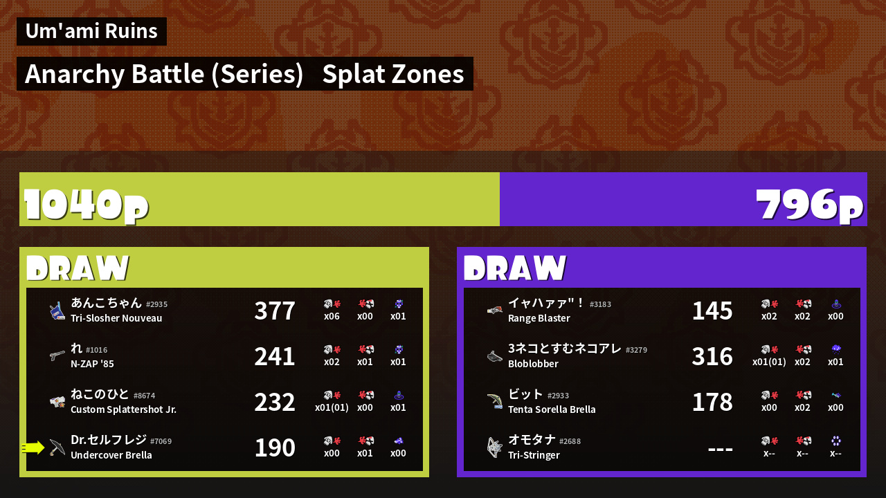 | Mode | Splat Zones - Anarchy Battle (Series) | ||