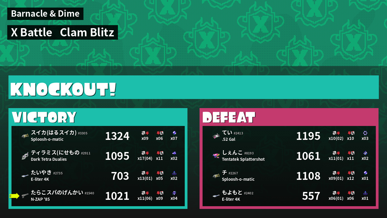 | Medals | #1 Splat Assister #1 Ink Consumer #1 Tacticooler User | ||