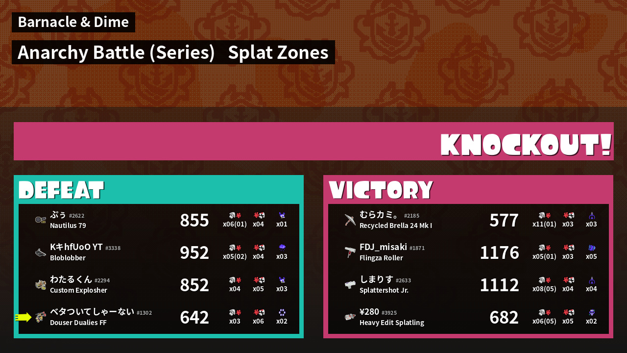 | Mode | Splat Zones - Anarchy Battle (Series) | ||