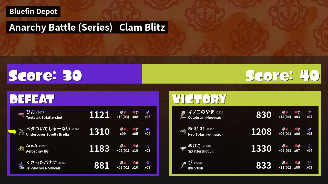 | Mode | Clam Blitz - Anarchy Battle (Series) | ||