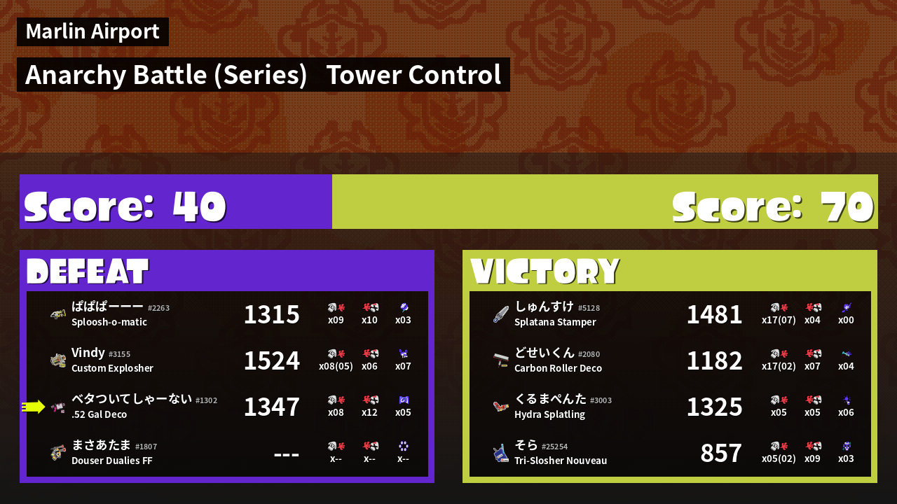 | Mode | Tower Control - Anarchy Battle (Series) | ||