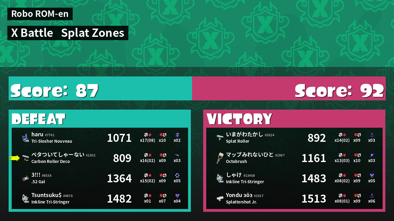 | Mode | Splat Zones - X Battle | ||