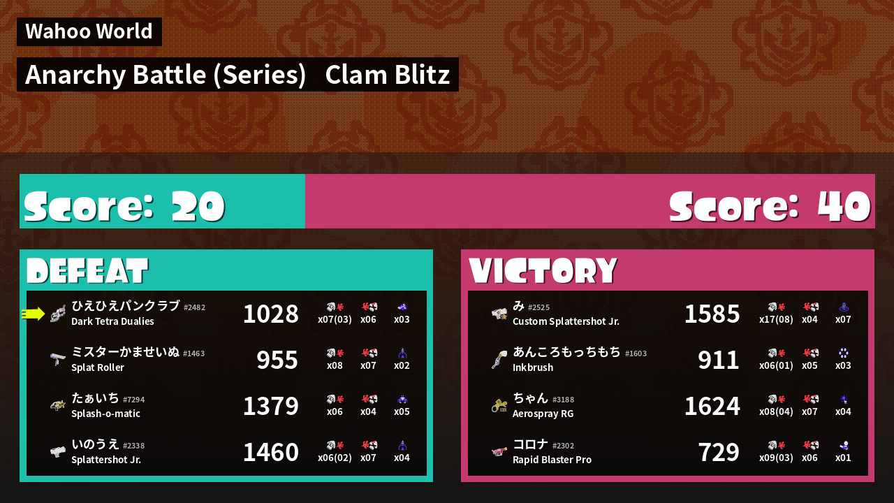 | Mode | Clam Blitz - Anarchy Battle (Series) | ||